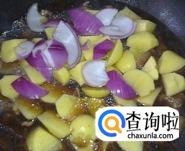 加入切好的洋葱、土豆块。