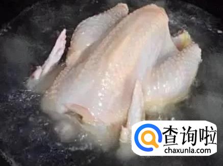 再将整鸡汆烫去血水,控干水分装入汤锅。