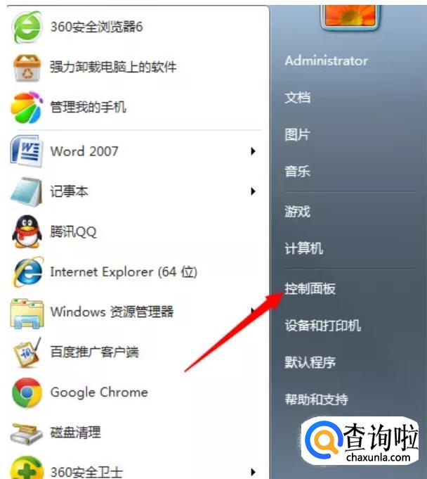 接着在电脑上打开开始菜单,找到控制面板,点击进去。