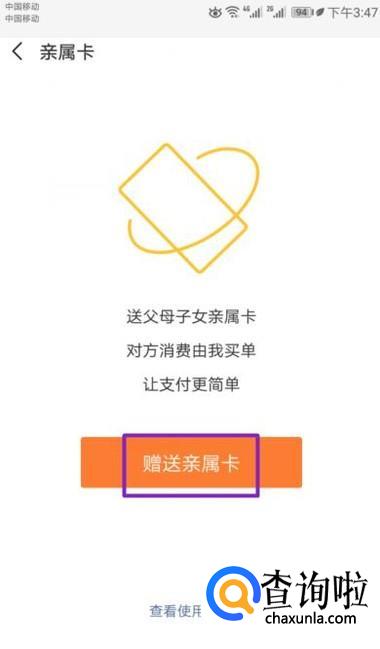 弹出的界面,我们点击赠送亲属卡;
