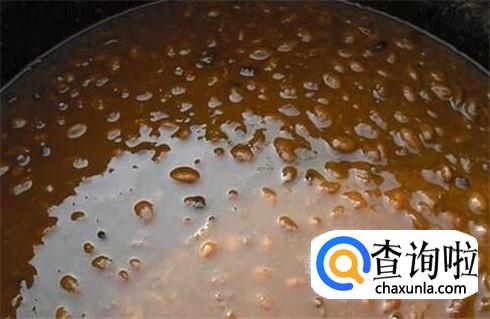 把发泡好的黄豆放入锅中,加入适量的冰糖、酱油、老抽、清水、辣椒,大火把黄豆煮开,然后再用小火把黄豆里面的汁都煮干。