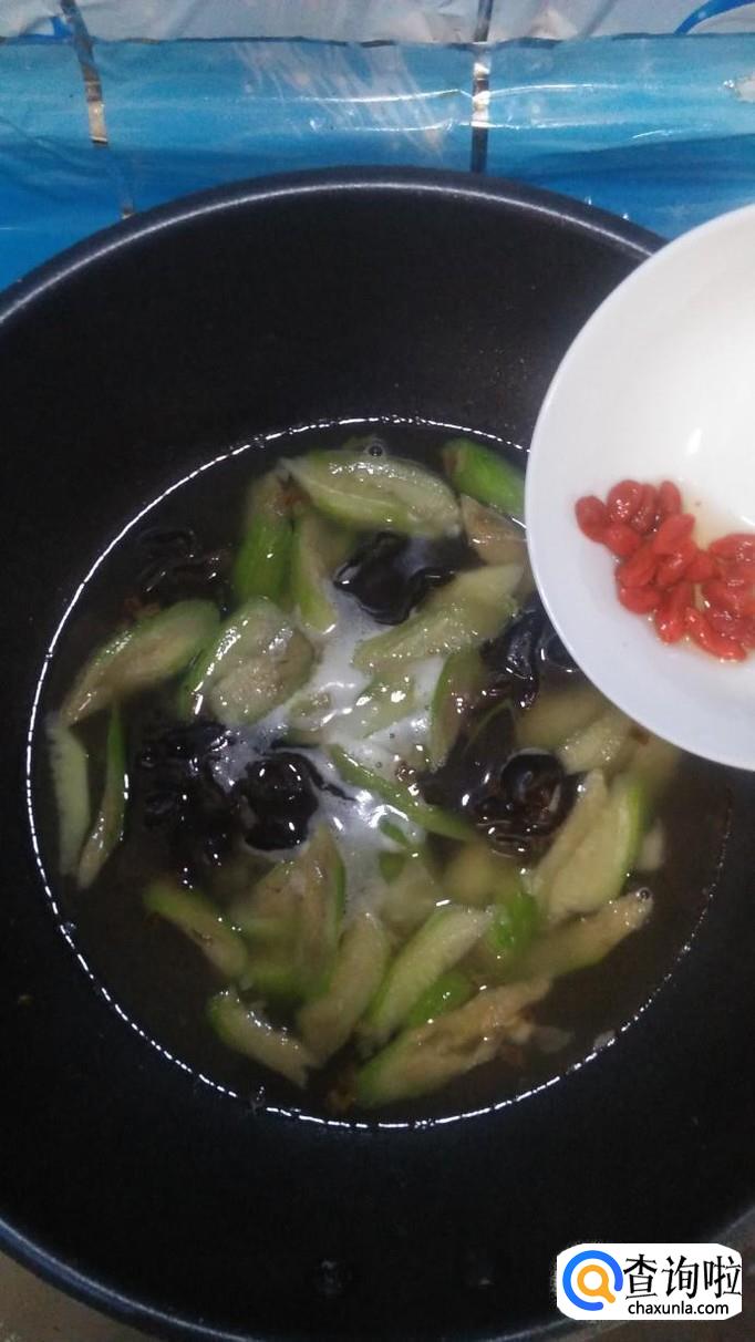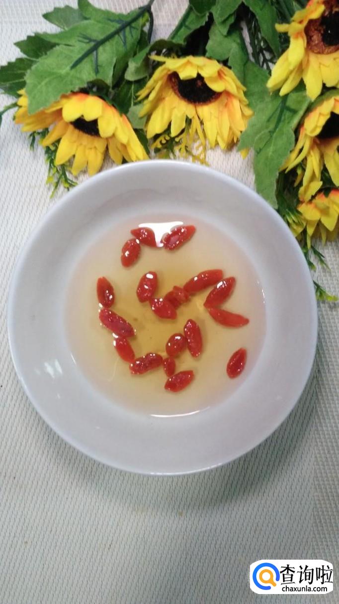 将枸杞子提前泡发,将泡发后的枸杞子放入锅中。