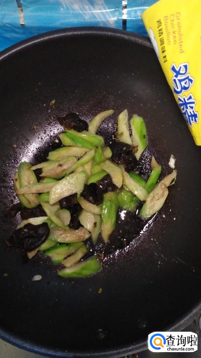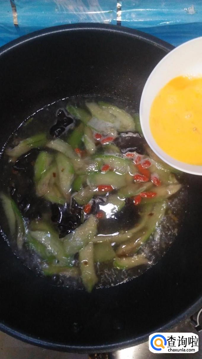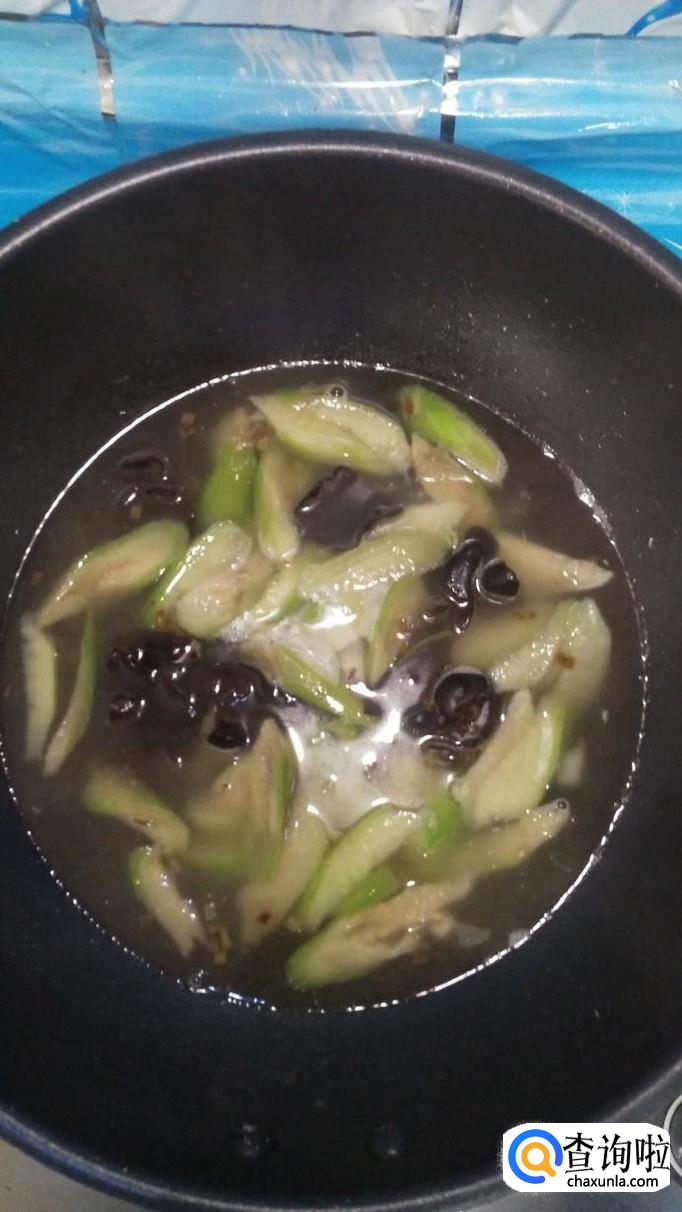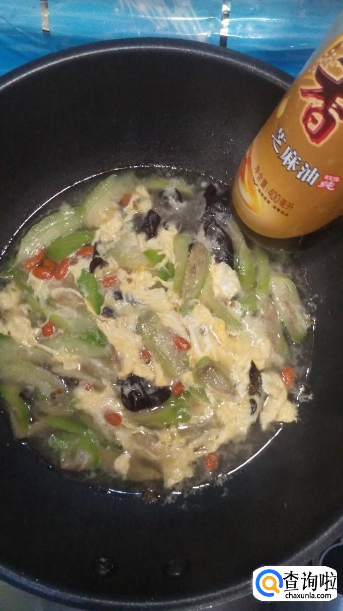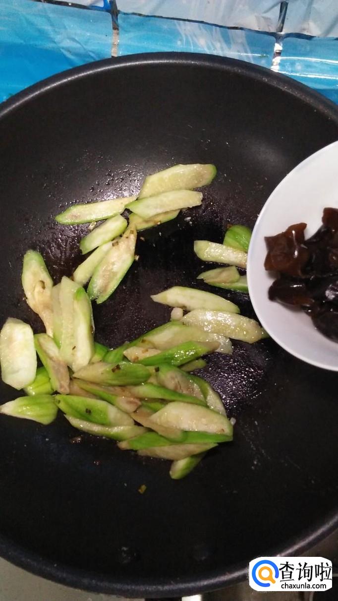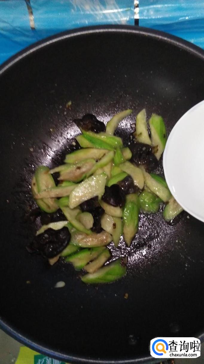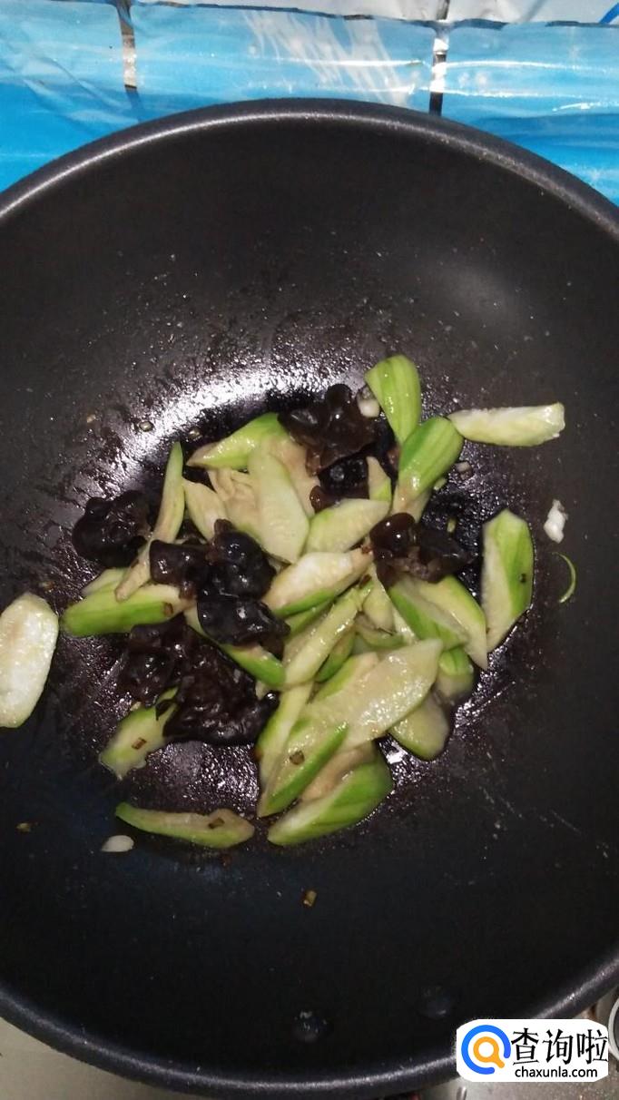 将木耳提前泡发,将泡发后的木耳,放入锅中,和丝瓜一起翻炒。