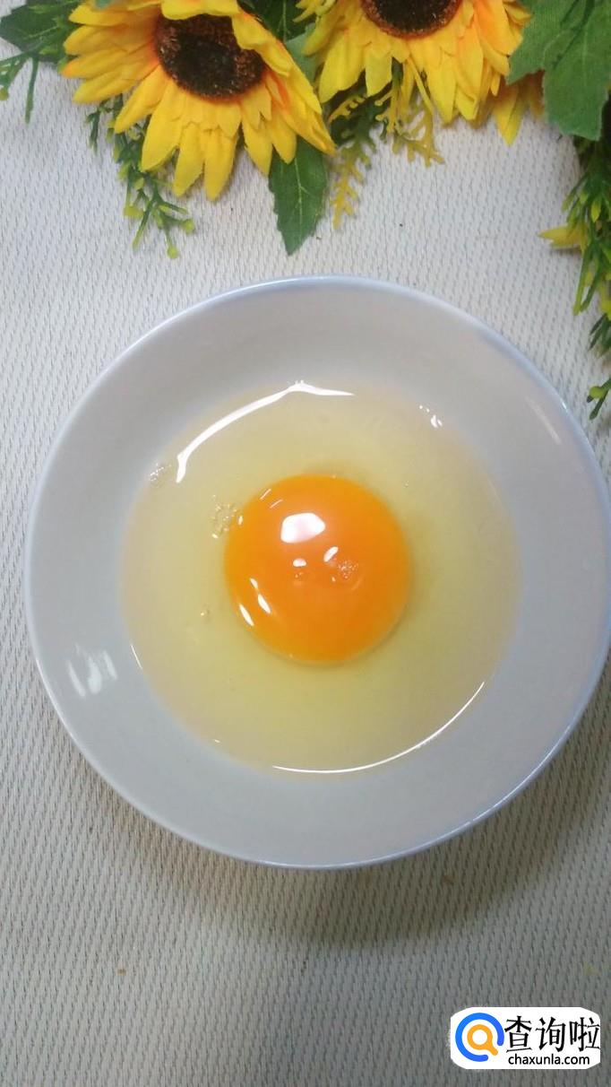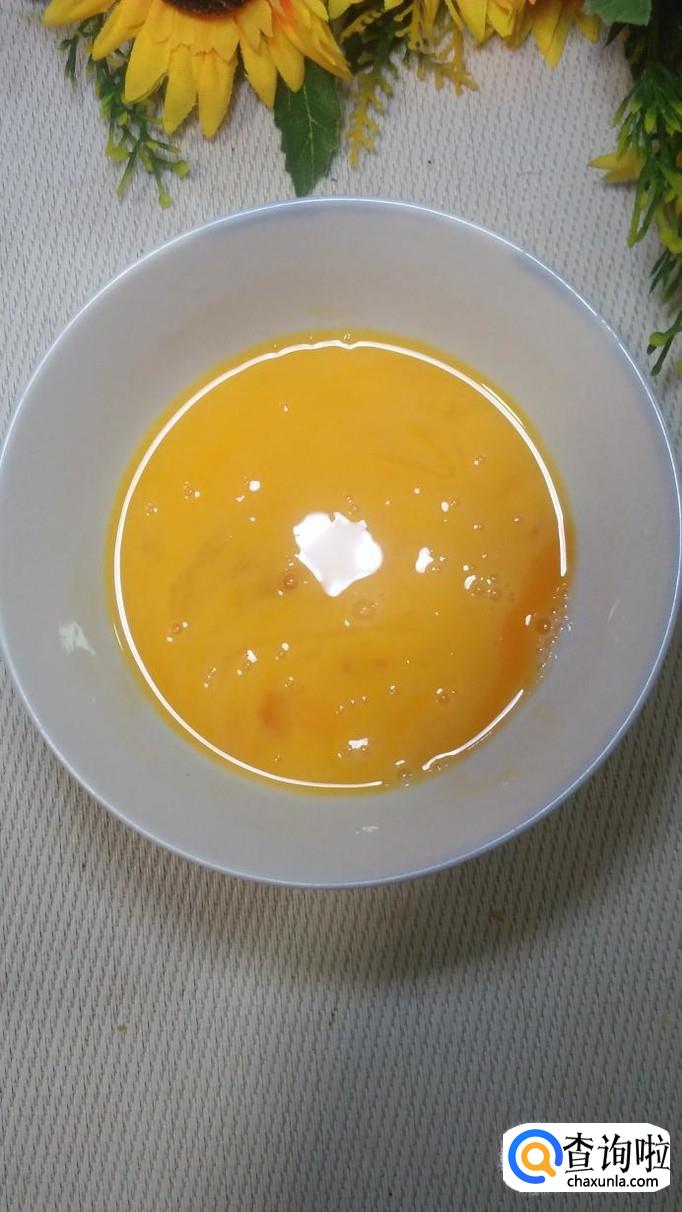 碗中打入一个鸡蛋,用筷子打散,水开后倒入锅中,用筷子搅拌一下。