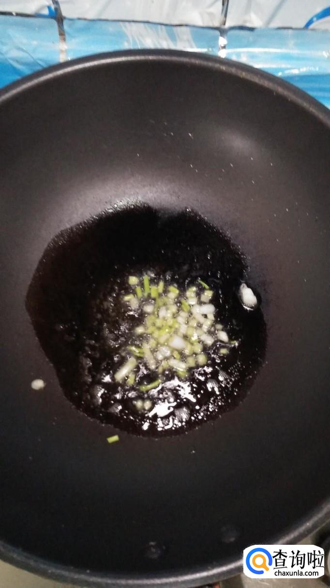 准备适量小葱和蒜,切成碎末,炒锅中放入适量油,将葱末,蒜末放入锅中炒香。