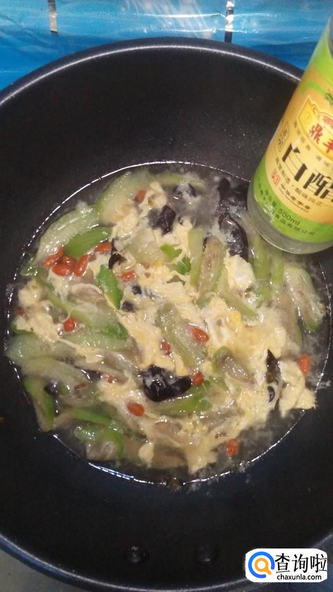 丝瓜适量,鸡蛋适量,枸杞子适量,木耳适量,盐适量,鸡精适量,生抽适量,香油适量,白醋适量。