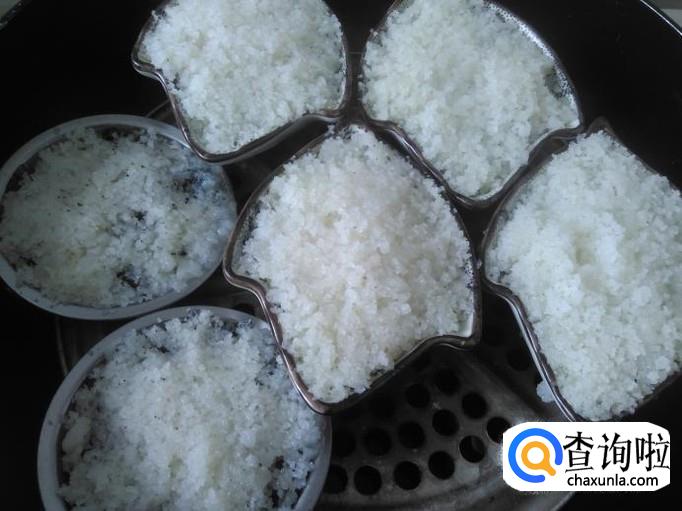 用油把几个小碟子里面全部刷过,然后放一层糯米粉进去。【我没有模具所以拿碟子代替】