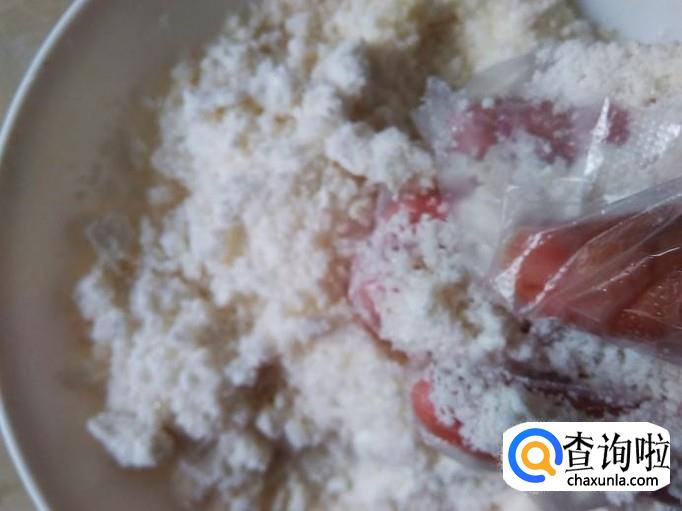 加适量的白糖用手搅拌均匀再把粉搓散。
