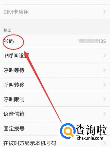 在电话界面,向下滑动该页面,即可看到自己的手机号码,如图所示。