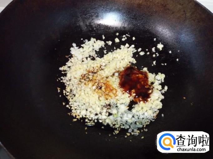 放入少许白糖,料酒,蚝油,海鲜酱油,翻炒成蒜蓉,盛出备用。