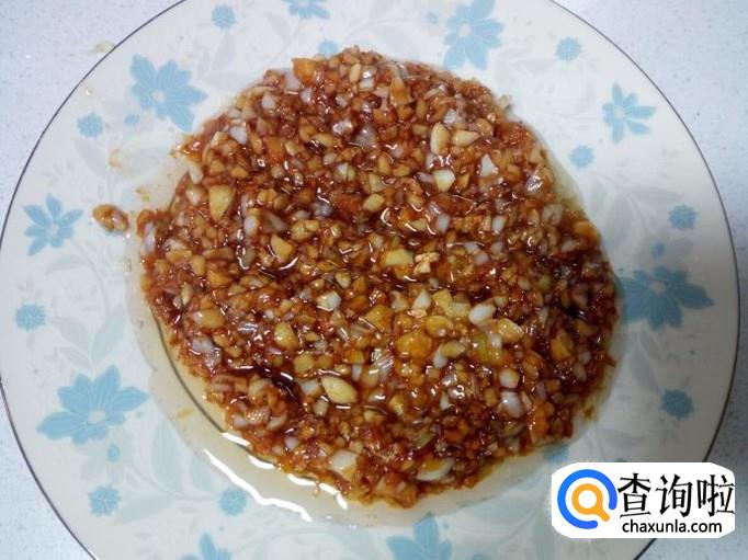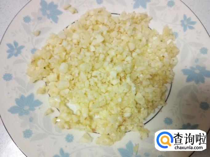 蒜去皮,用水清洗干净,控干水分,切成碎末。