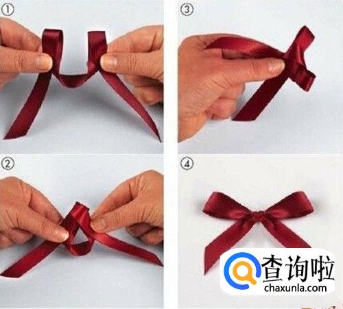 不管什么物品,即使没有包装纸或箱子,也不装在袋子里,只要系一根丝带,就会不可思议的瞬间变成一件礼物。如果打上漂亮的蝴蝶结,就会立刻增添礼物本身的魅力。将丝带横向系实,正面向外(如1),左右两种侧折成花瓣大小,左侧折出的花瓣长于右侧(如2),左右交叉,中心留孔,长侧从孔中穿出(如4),左右整理成相等大小,根据蝴蝶结的大小把丝带裁剪成合适的长度,就完成了。