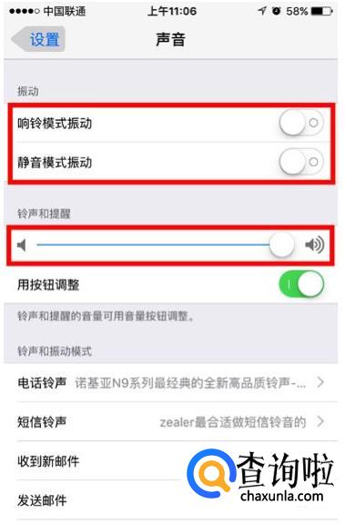 「 设置 — 声音 — 振动 」