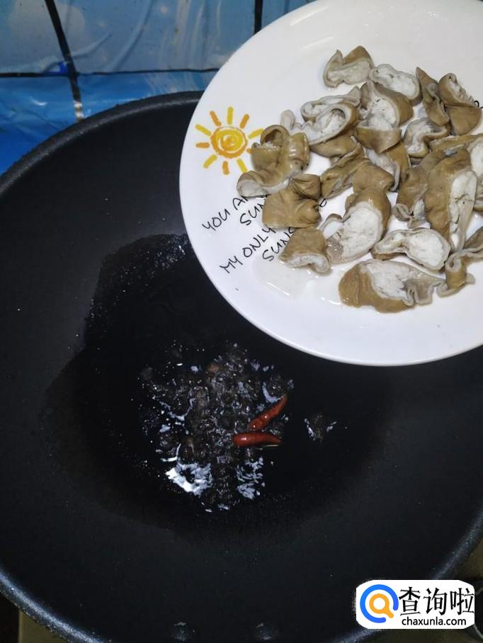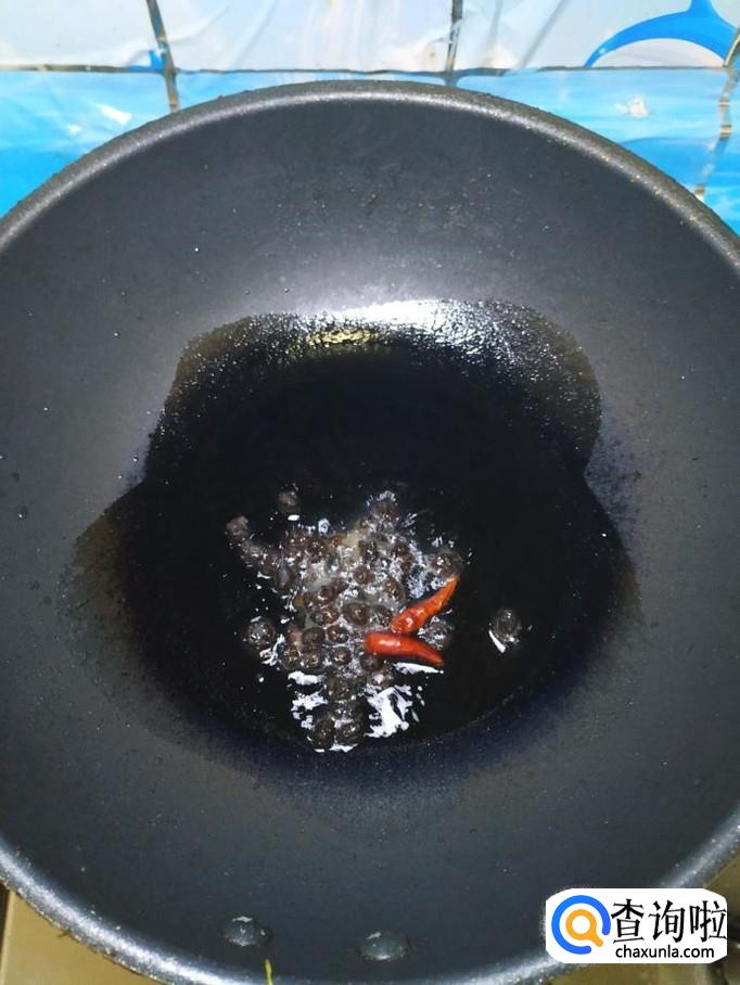 炒锅中放入适量油,油热后放入适量干辣椒和豆豉爆香。