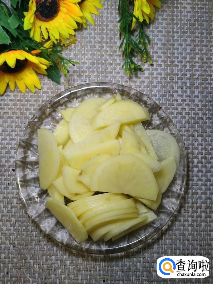 准备适量洋葱,洗净后,切片备用;再准备适量土豆,洗净后切片,洗去淀粉备用。
