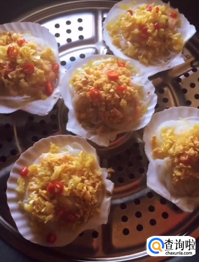 最后美味的蒜蓉粉丝蒸扇贝就制作完成啦!放入盘中即可享用啦!