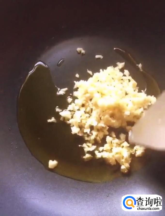 接着,我们在锅中放入少许油,油热放入蒜末,把它炒香