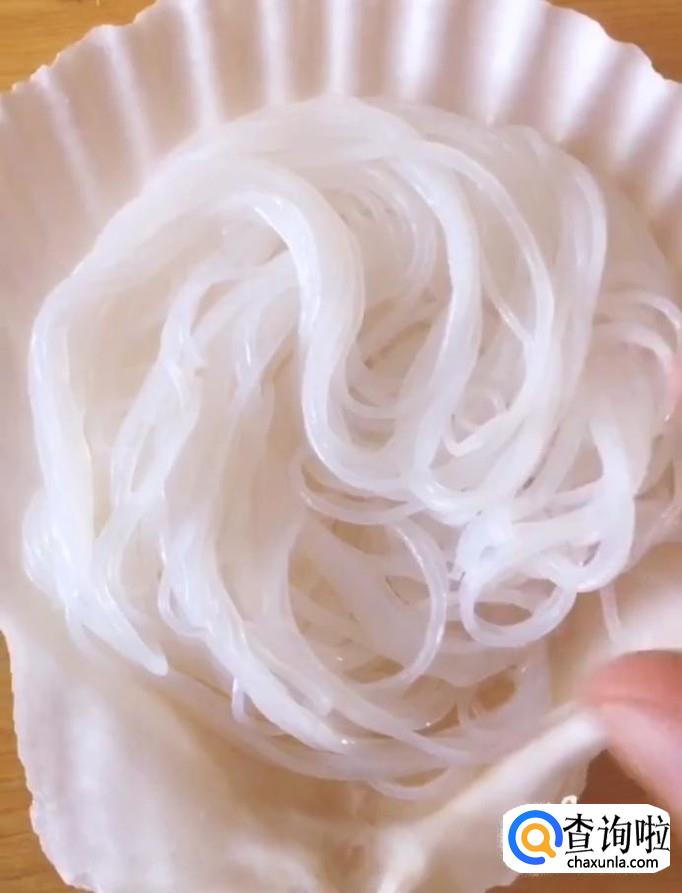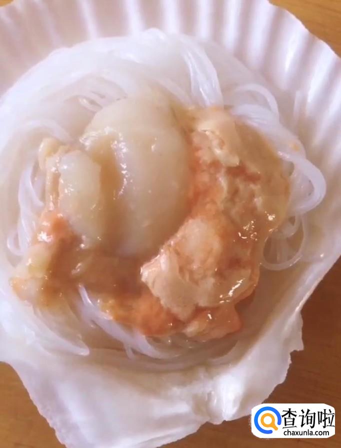 然后我们在扇贝壳上面放上泡好的粉丝,再放上扇贝肉