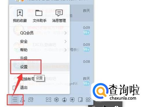 登陆上QQ之后,点击图示位置,找到设置,点击并进入,如图所示。