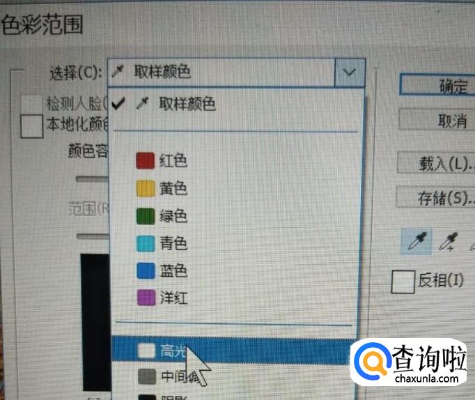 在“色彩范围”里,我们选择“高光”,点击“确定”,图片的高光部分也能被选中。