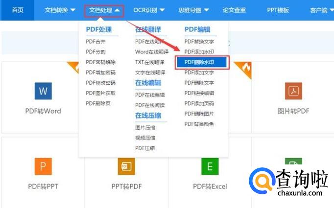 看到的有一个文档处理里面的删除水印,这个时候就找到删除水印了。