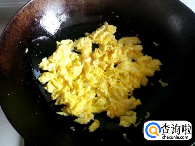 先用锅把鸡蛋炒出来,炒至七分熟,盛出备用。