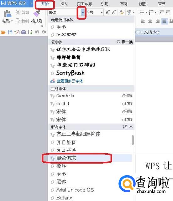 此时,我们就可以应用该字体了。我们打开WPS来演示一下,如图所示,点击字体下拉菜单,就能看见我们新安装的字体了。