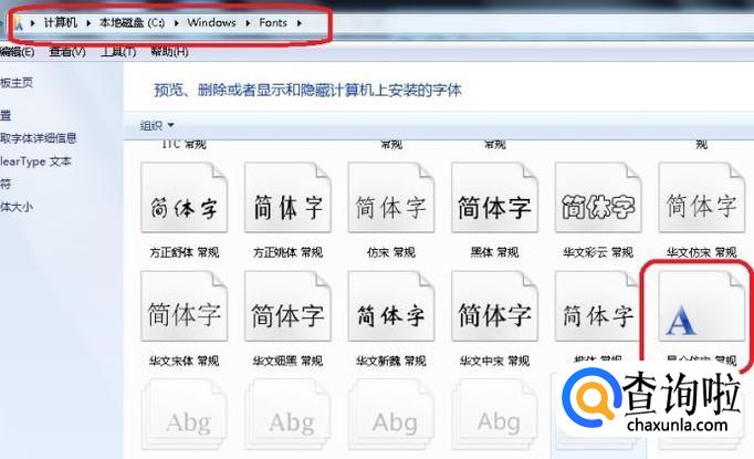 然后,我们需要找到系统的字体文件夹(路径见图中标记处),然后把下载的字体文件粘贴到该文件夹中。