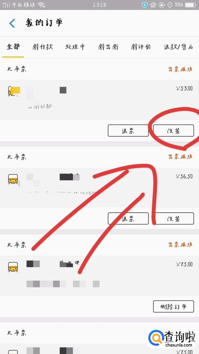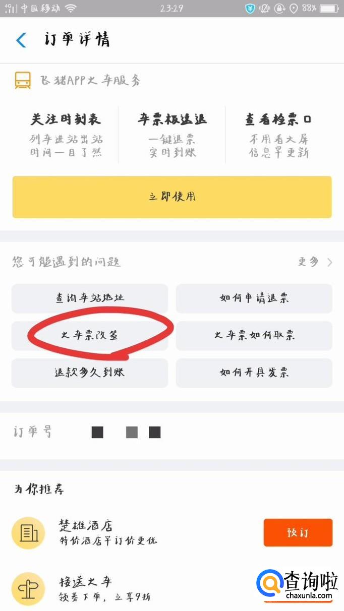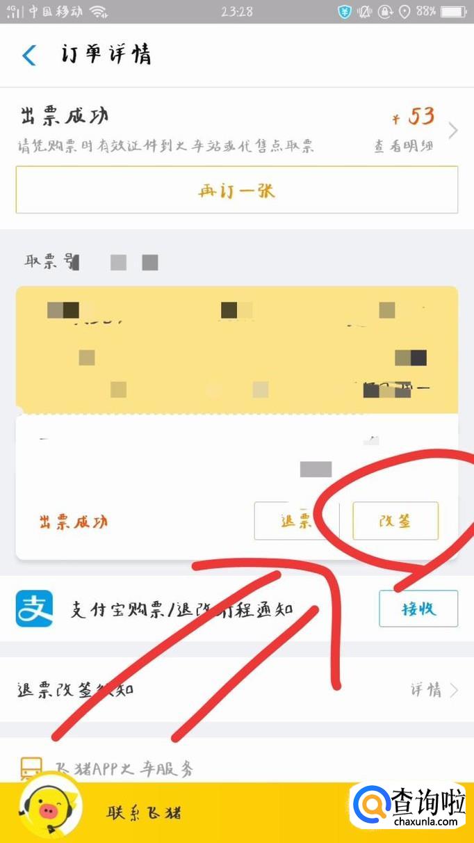 在该火车票详细情况界面,点击下方“改签”选项,即可成功改签。