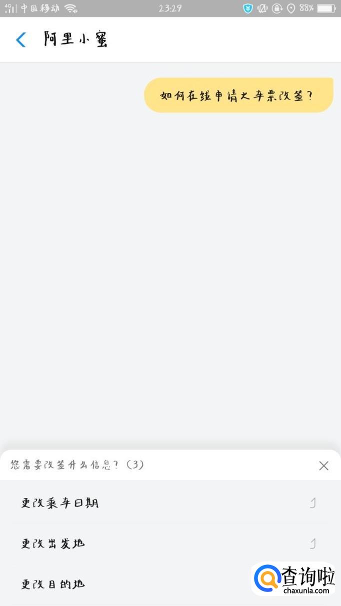 如果需要了解火车票改签,可以在问题咨询下方,点击“火车票改签”。