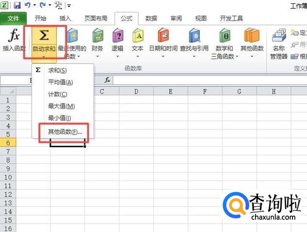 然后点击自动求和的下拉箭头,之后点击其他函数;