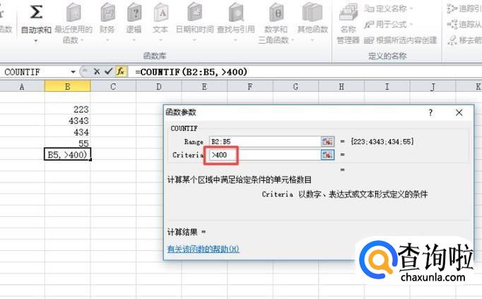 结果如图所示,这样我们就求出了大于400这个条件的个数了。
