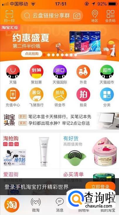 打开淘宝的页面是淘宝首页,我们点击一下右下角进入到个人中心。