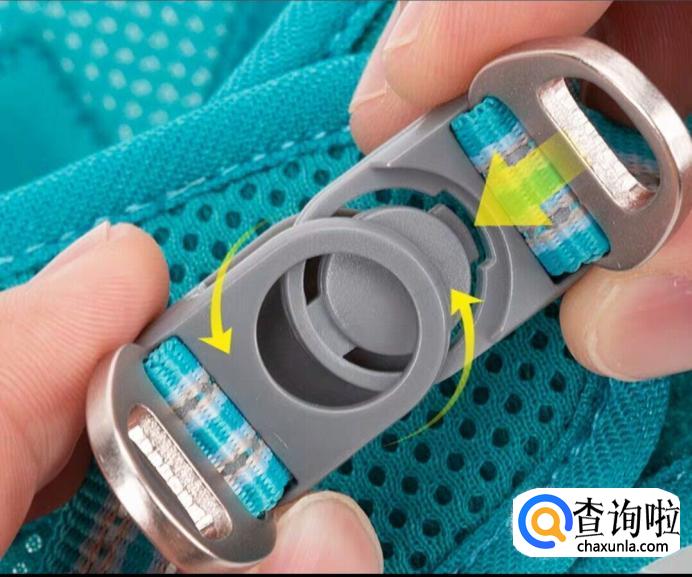 佩戴好肩带后,扣上牵引绳,注意一定要扣好,以免猫咪紧张挣脱牵引绳跑掉,可以左右晃一下试试松紧度。