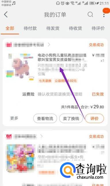 然后点击其中一个订单;