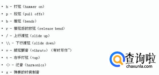 分解和弦伴奏记谱:符号为“X”,如果你用左手按好和弦,“X”表示用右手指弹响其所在的弦。