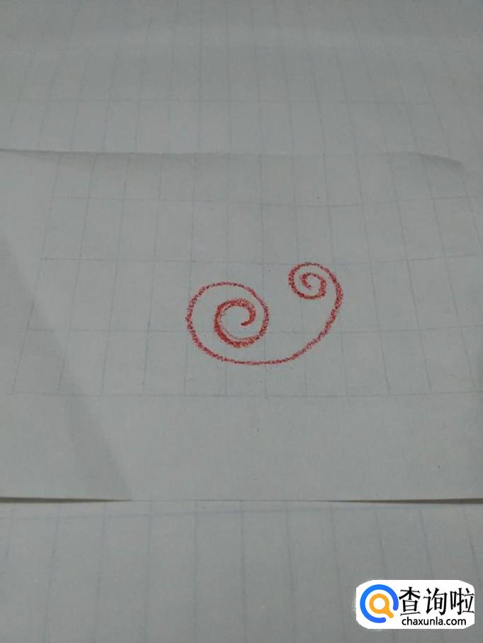 再从曲线的下方画一条两端都是螺旋状的曲线。