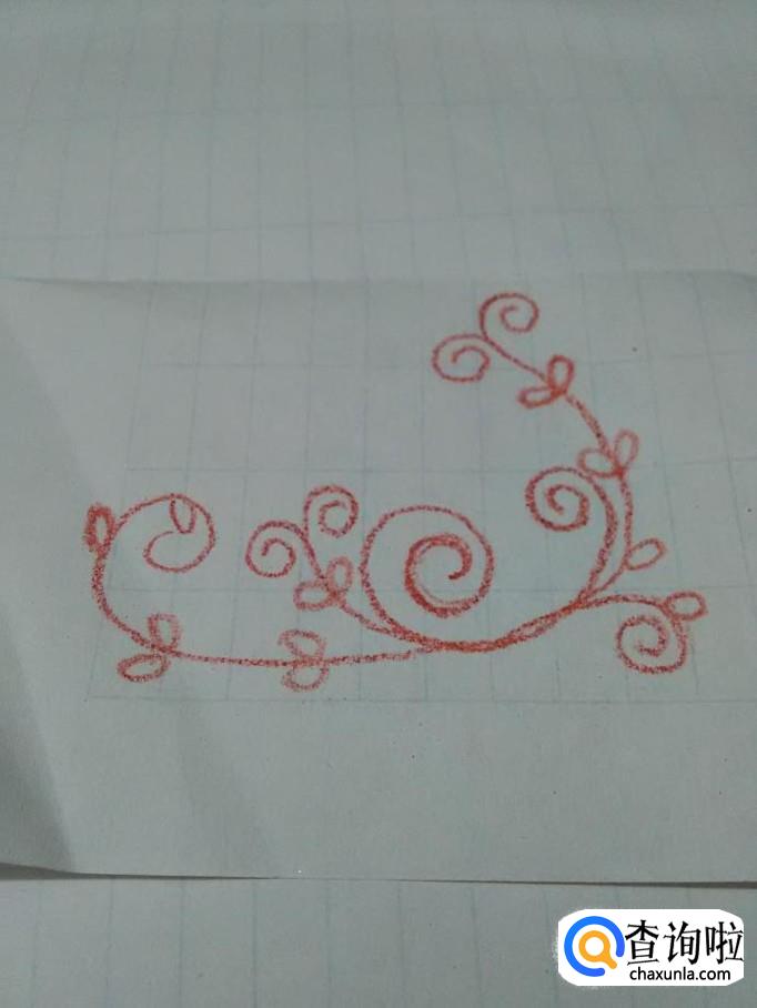先用彩笔在纸上画一条曲线,两端卷成螺旋状,表示藤蔓。