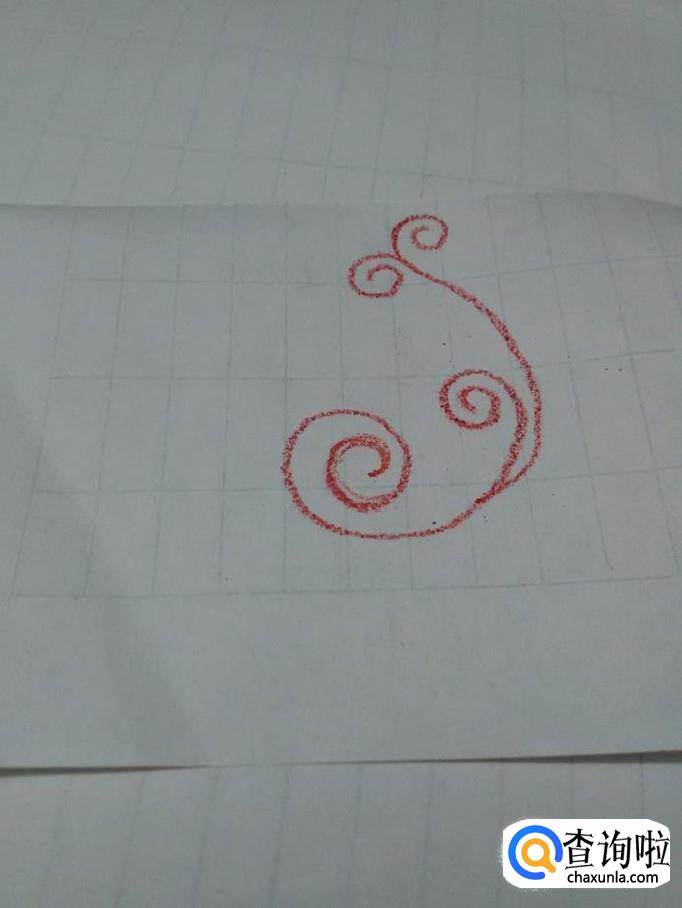 再用彩笔在曲线右侧画一条分叉的曲线,末端也卷成螺旋状。