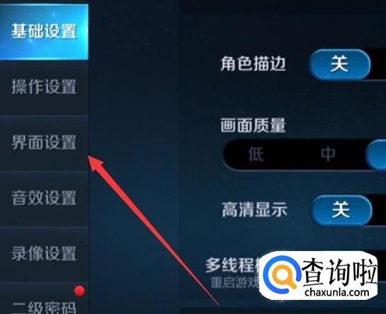 进入之后,选择“界面设置”,进入下一页面,如图所示。