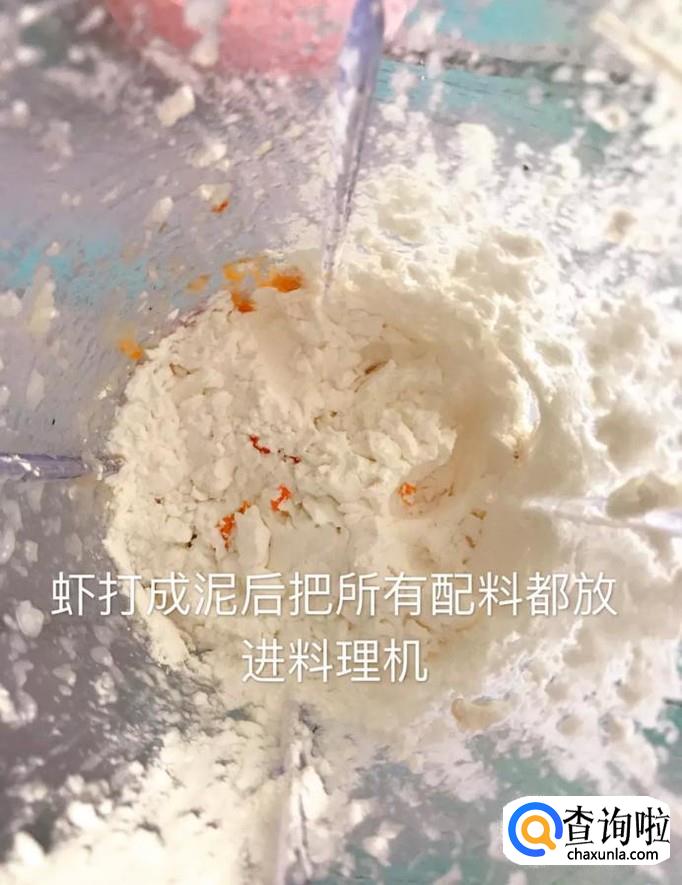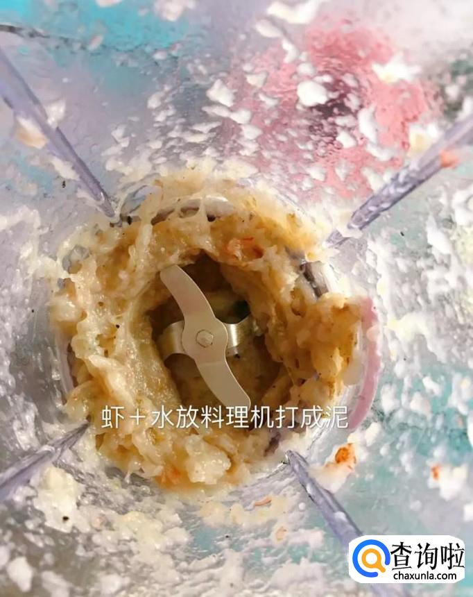 接着在料理机中加入虾和水打成泥,如下图所示。