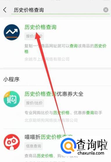进入之后,搜索“历史价格查询”,点击并进入,如图所示。