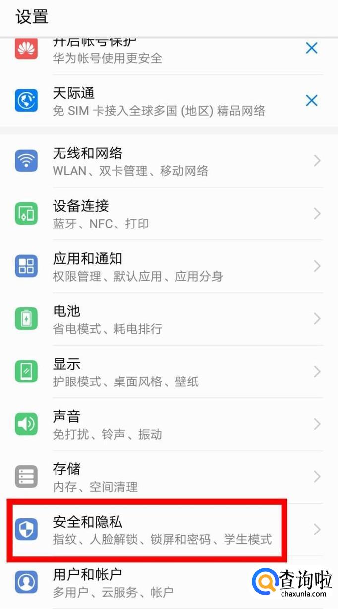 点击安全以隐私,如下图所示。
