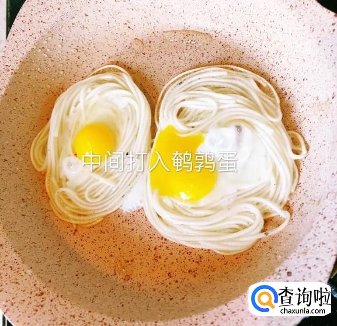 接着在中间打入鹌鹑蛋,煎至两面金黄就可以了,