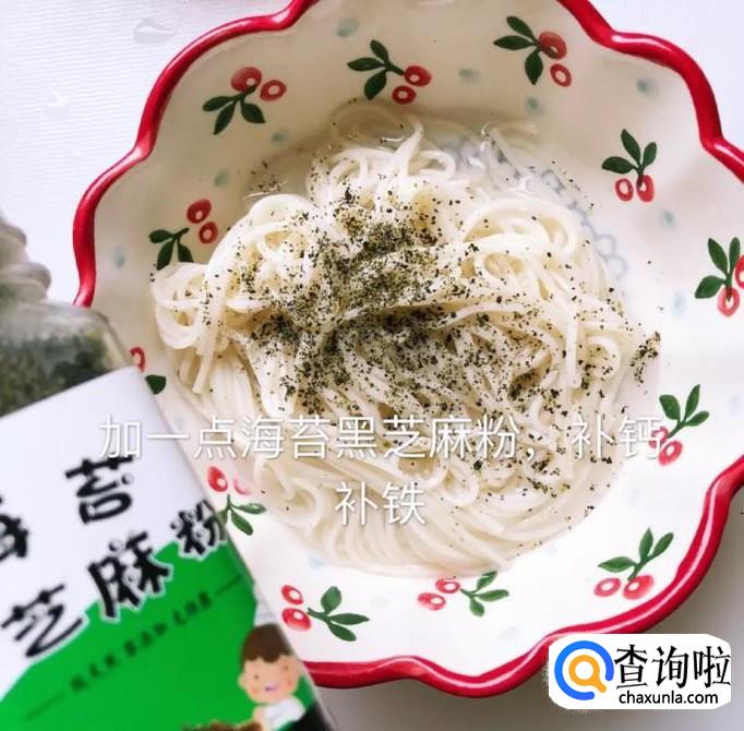 接着加入一点的海苔黑芝麻粉,搅拌均匀,如下图所示。