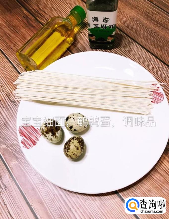 首先准备好所有要用到的食材,如下图所示。小贴士:细面、鹌鹑蛋和适量的调味品。
