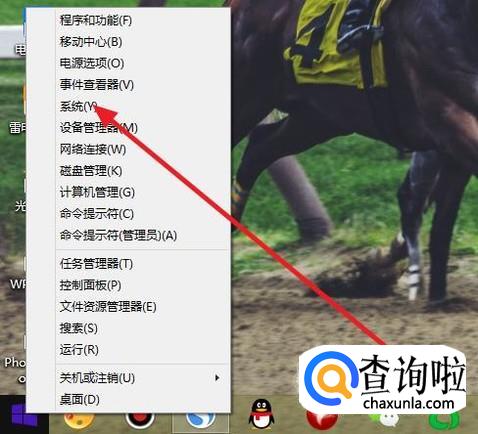 也可以通过鼠标右键点击电脑左下角的Windows图标,再找到系统来打开。