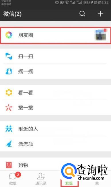 首先,我们打开我们的手机微信,然后我们点击发现,之后我们点击朋友圈;