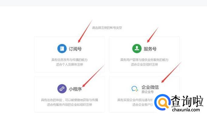点击立即注册以后,可以在里面选择你要注册的类型:如果是个人,建议选择订阅号,如果是企业可以选择服务号。