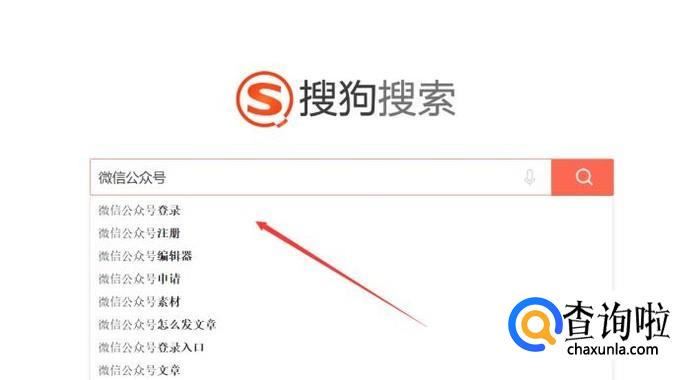 打开搜狗搜索,在搜索框里输入:微信公众号,点击搜索。